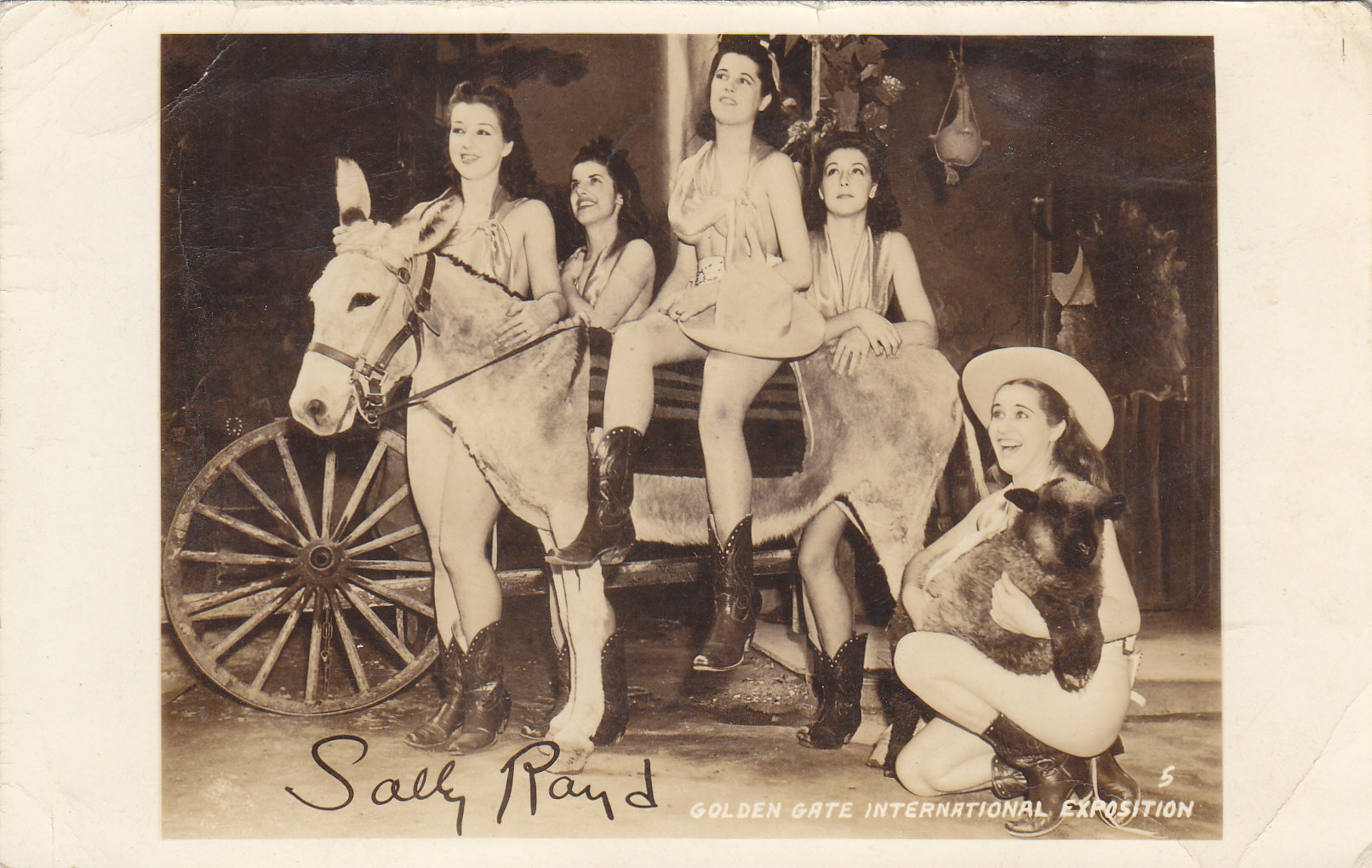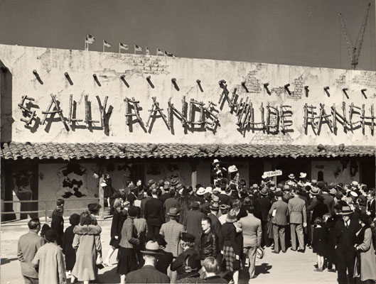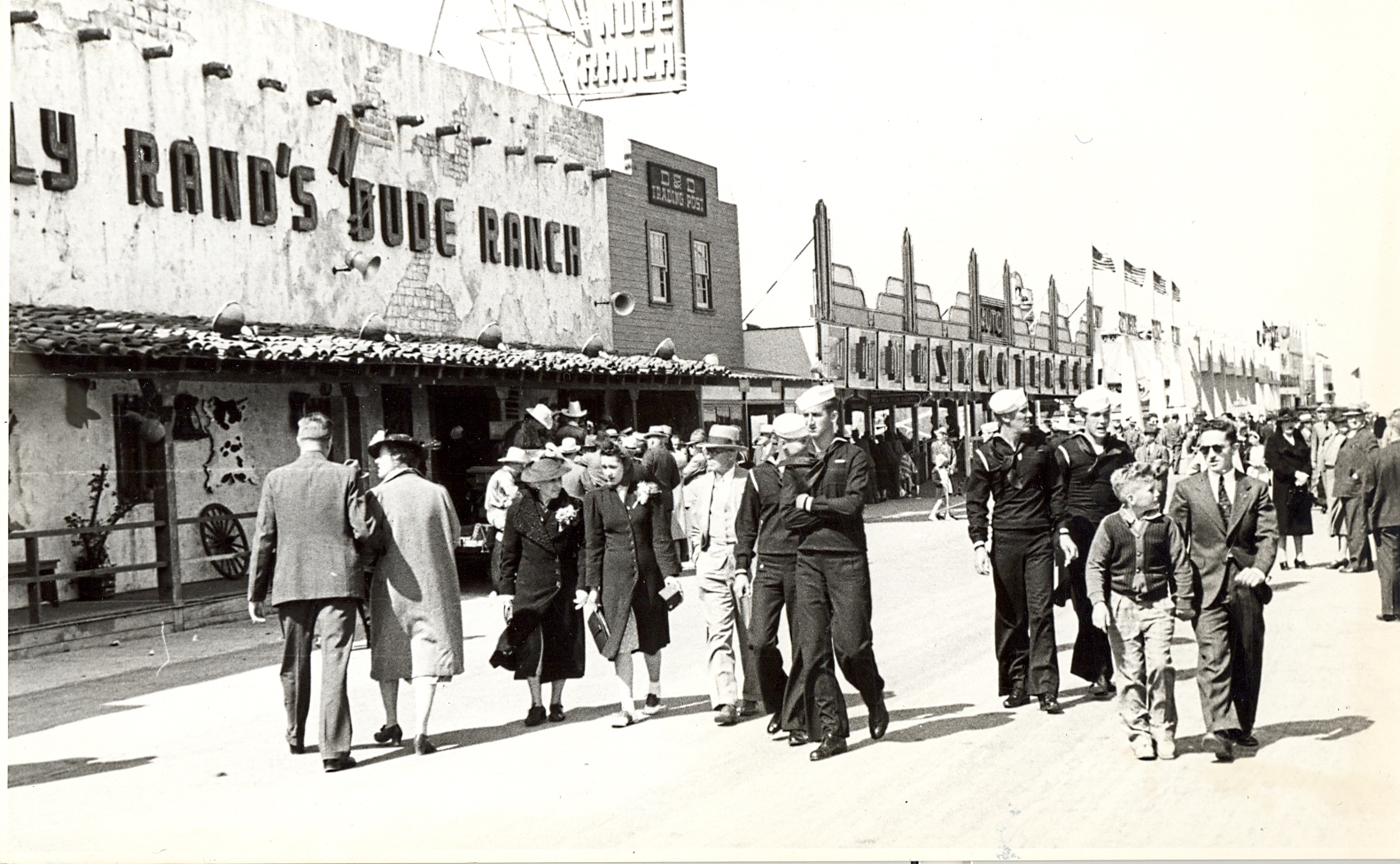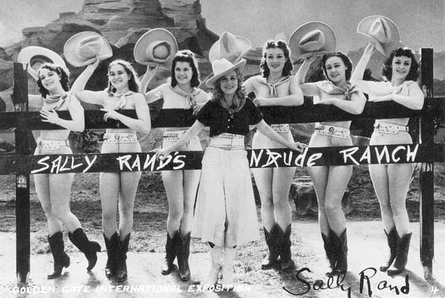 For 25 cents, fair-goers on Treasure Island could line up behind a glass wall and watch young women play badminton, ride donkeys, and engage in other activities while wearing not much more than hats, boots and a bandana, in the cheekily-named NUDE RANCH.